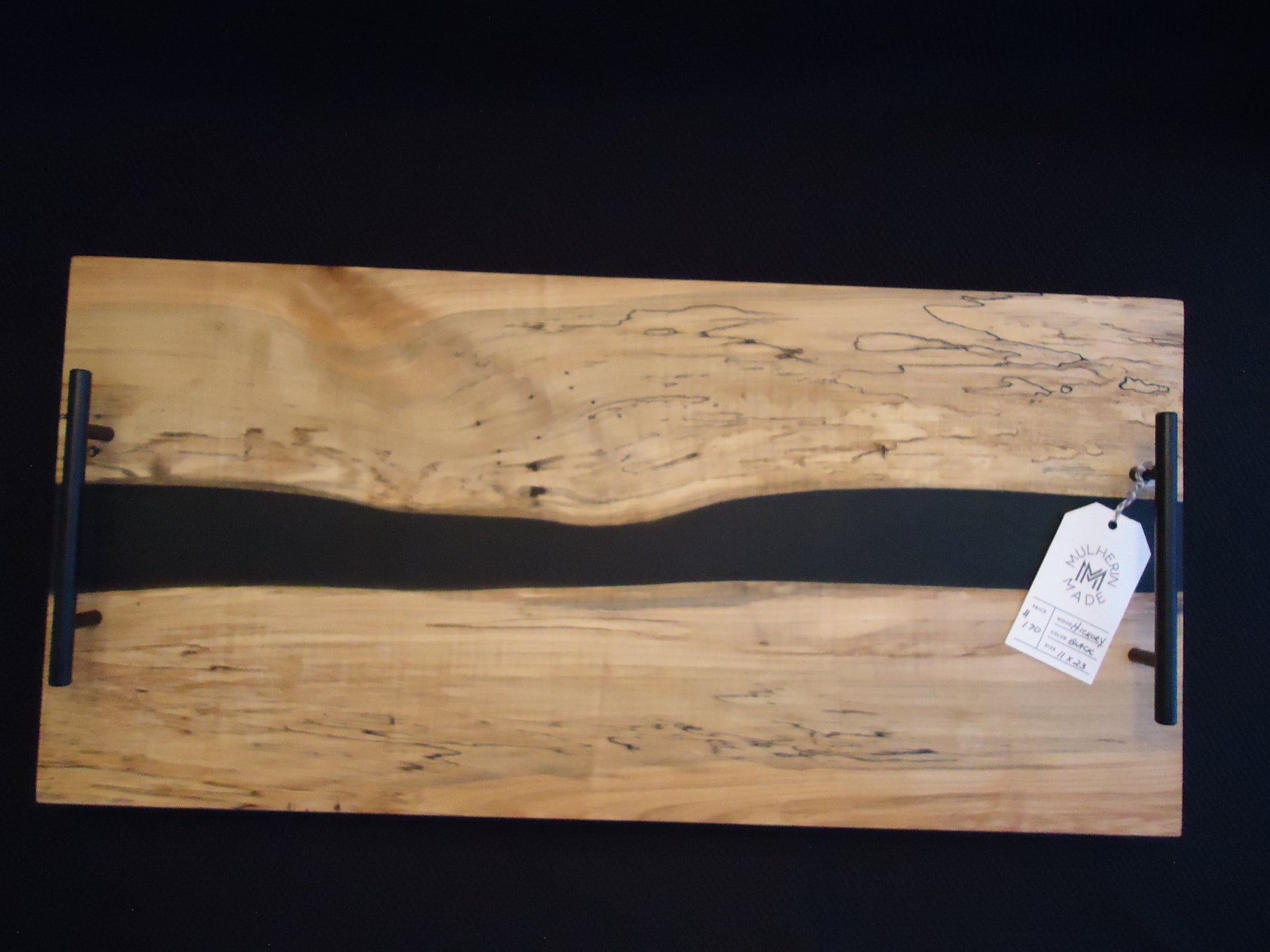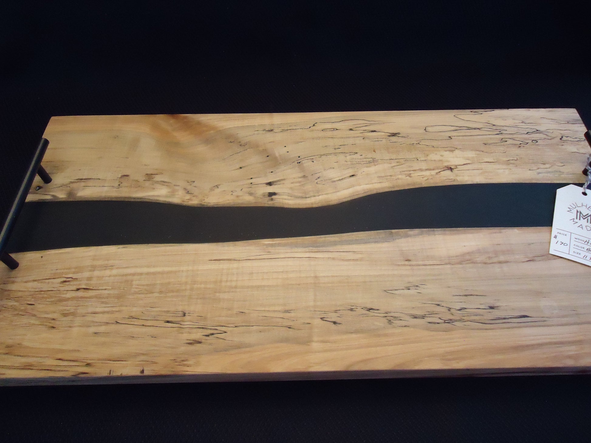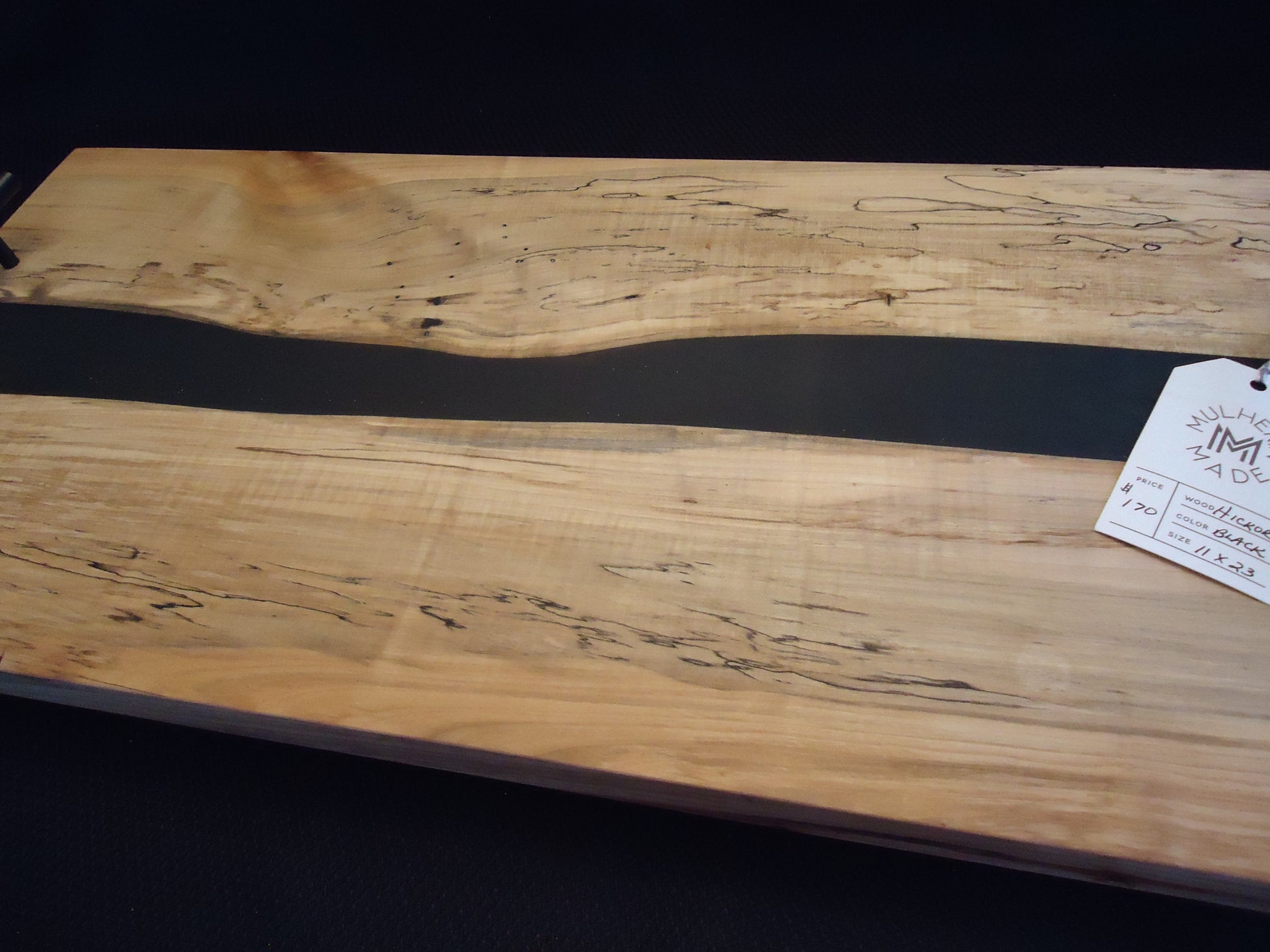 Charcuterie River Board, 11x23" Hickory with Black Resin