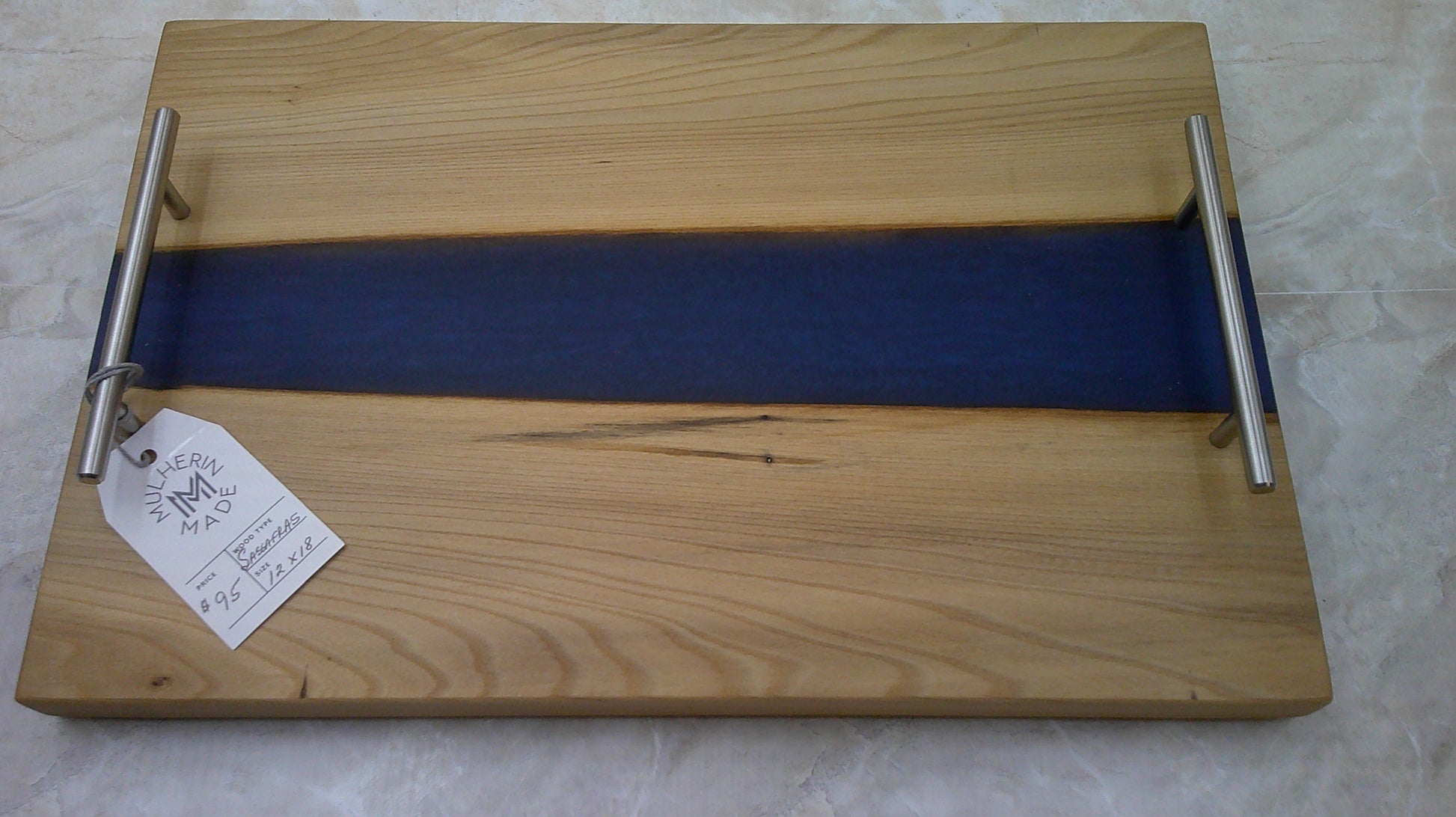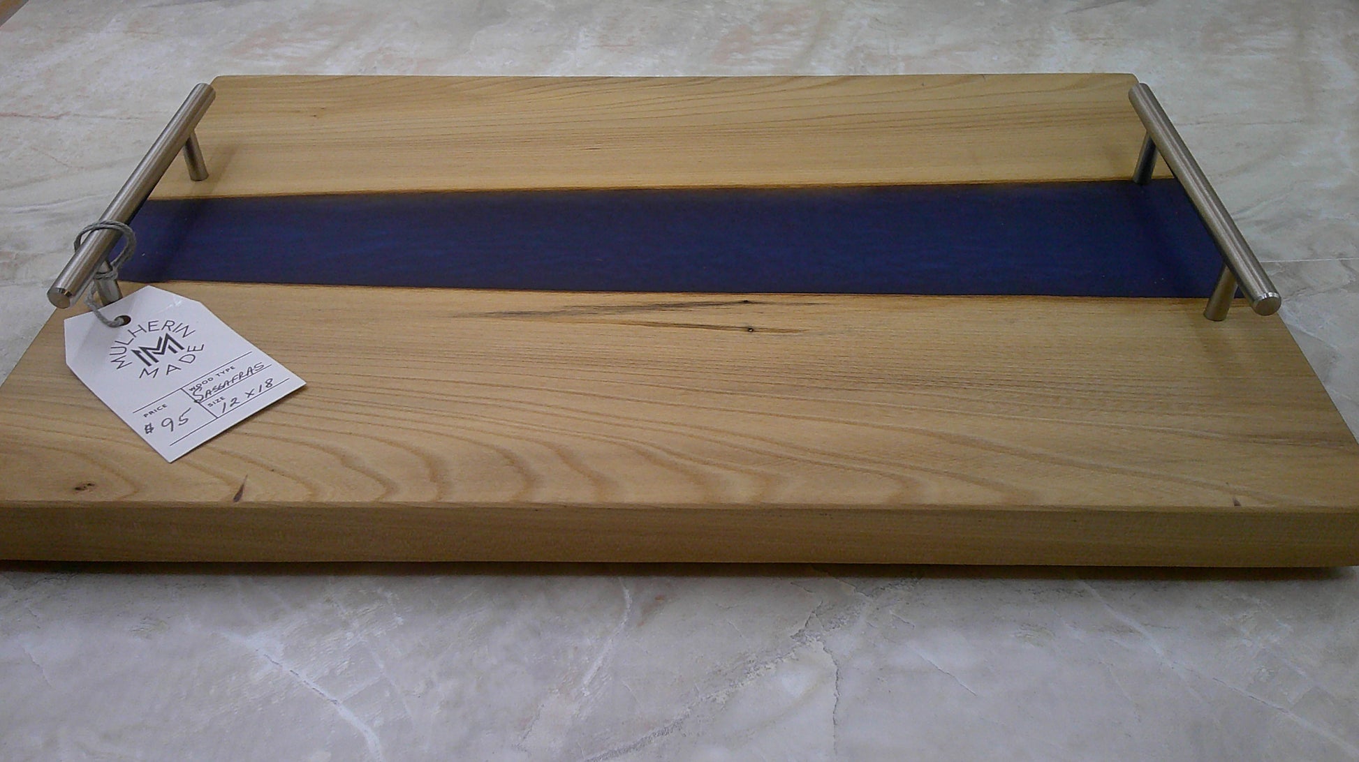 Charcuterie River Board, 12x18" Sassafras with Dark Blue Resin