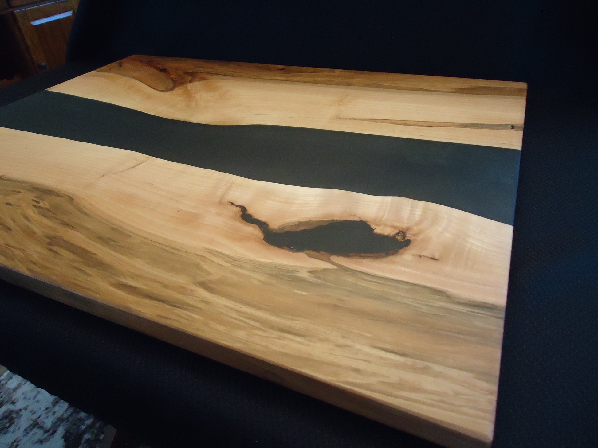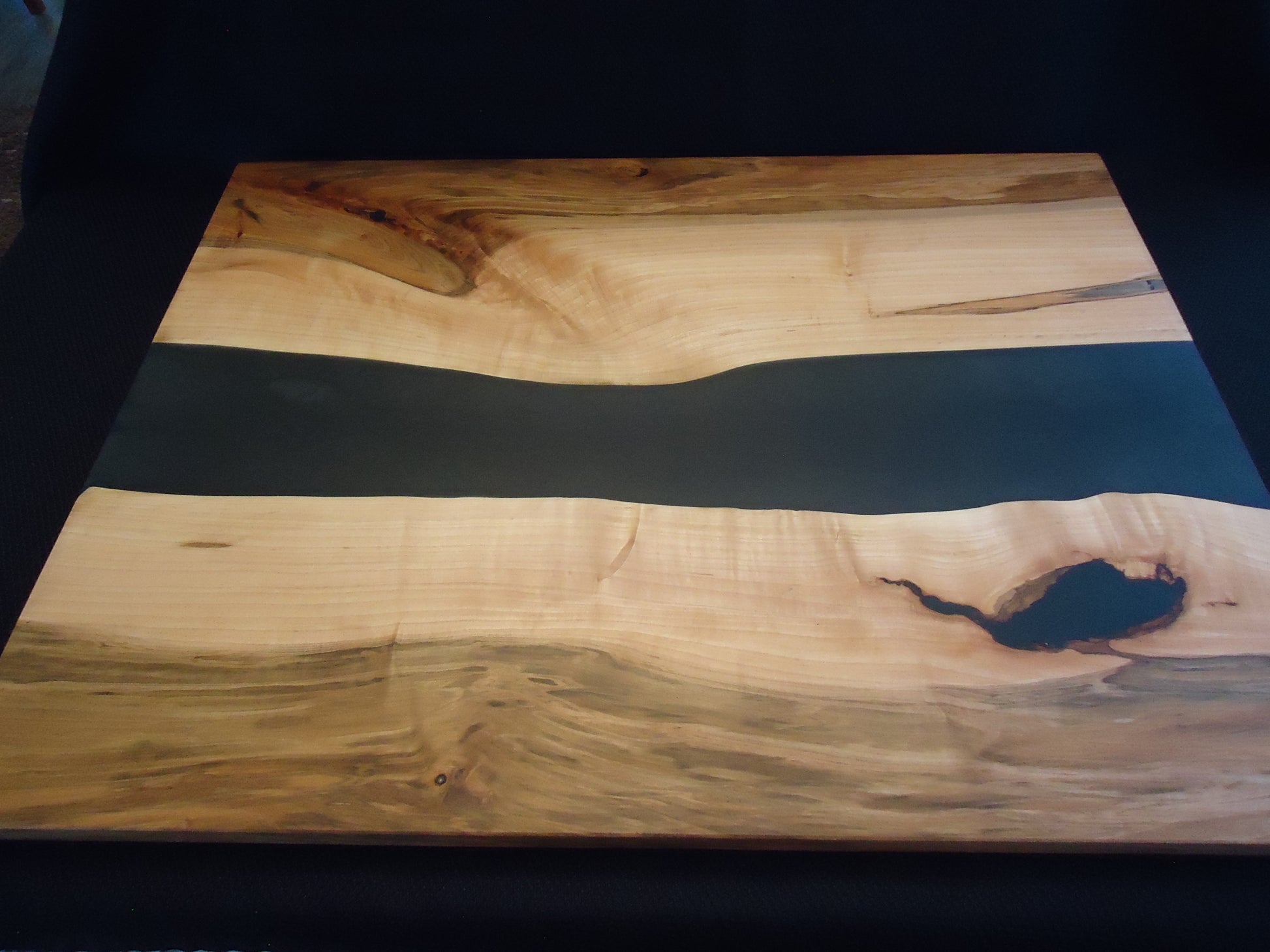 Charcuterie River Board, 20x26" Ambrosia Maple with Black Resin